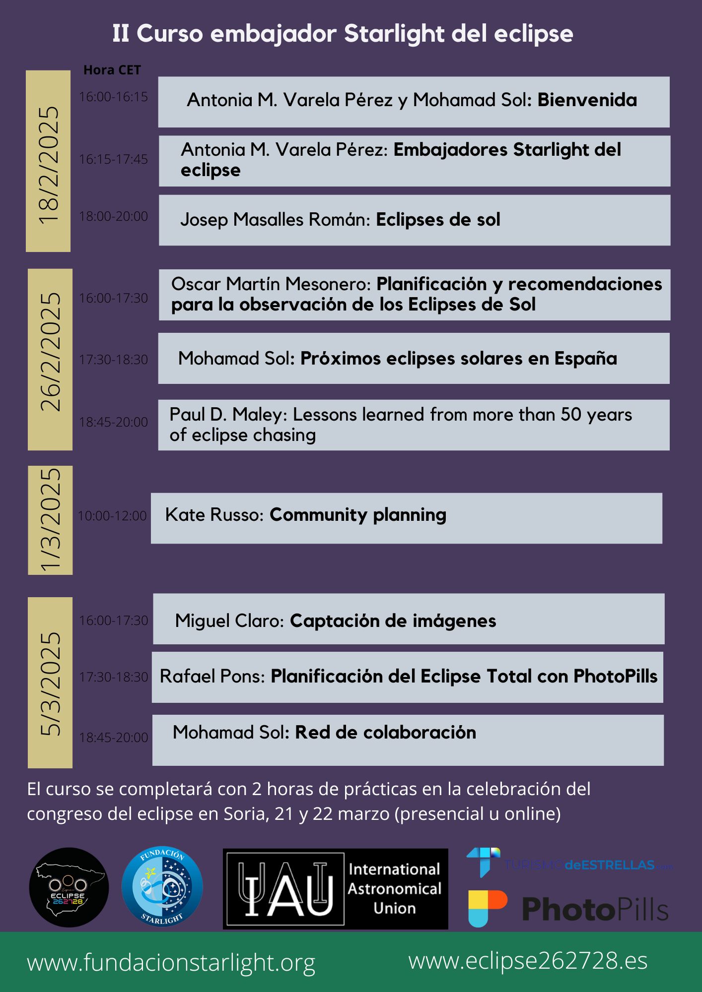 En 2026, 2027 y 2028, las franjas de tres eclipses solares atravesarán España. Los eclipses de 2026 y 2027 serán totales y el de 2028 será anular. Estos son los primeros eclipses solares totales que ocurren en la Europa continental en el siglo XXI. La Península Ibérica experimentará su primer eclipse solar total después de más de un siglo. Sin duda, España será el primer destino en todo el mundo para observar el eclipse total de 2026 según la franja de totalidad. Un año después, una vez más la franja de totalidad de otro eclipse solar cruzará la costa sur de España donde la totalidad durará más de 4 minutos. Finalmente, seis meses después, la trayectoria de un gran eclipse solar anular atraviesa una vasta zona de España y el anillo de luz solar restante aparecerá sobre el horizonte antes de la puesta del sol.